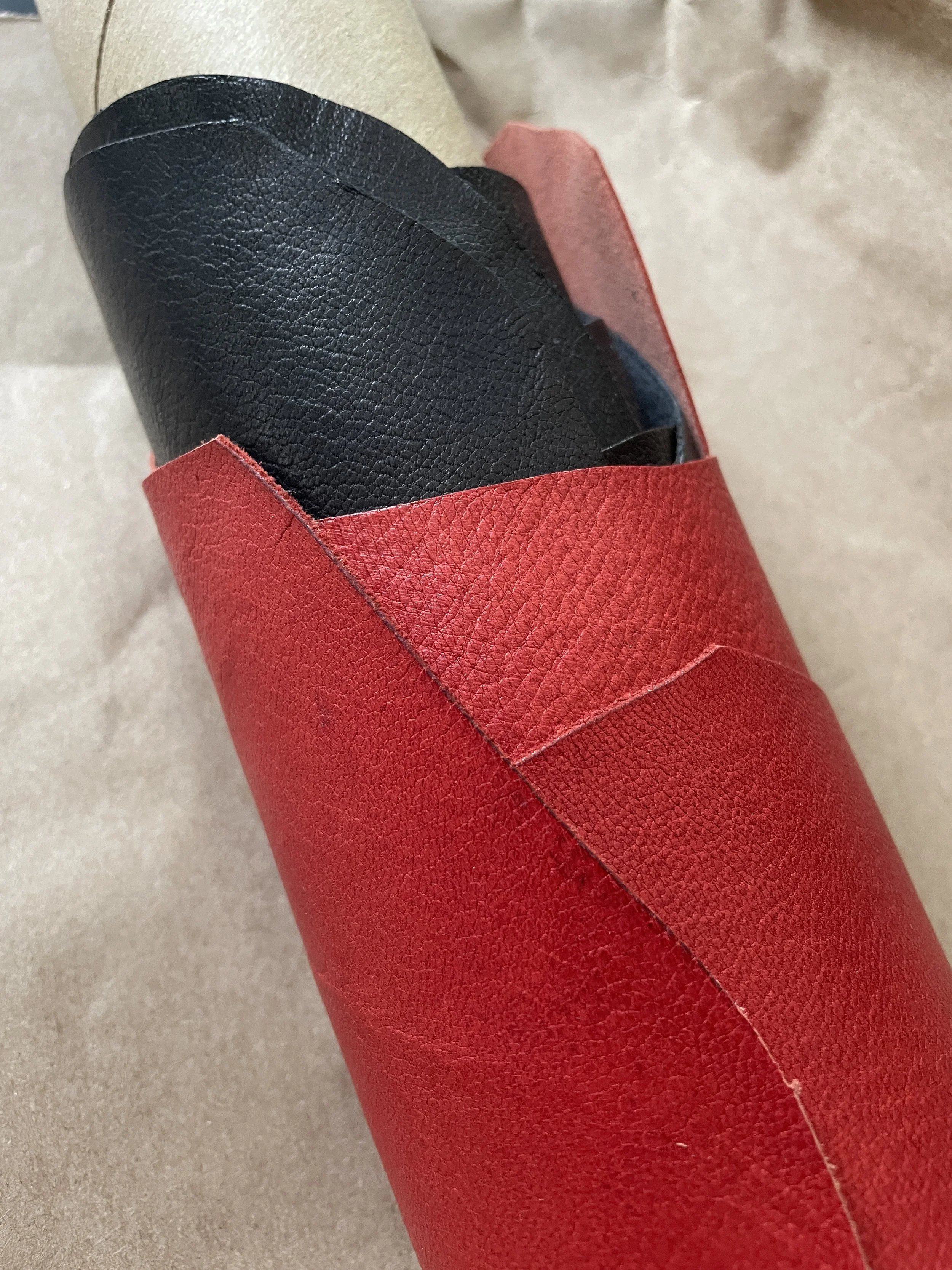 The red leather Contest Edition is bound in red goatskin from Alran Tannery. This edition is hand-tooled in black foil in a quasi-Medieval / Gothic style by Gerald Ward. The red leather edition would feel at home hidden behind a tapestry of Joan of Arc in Castle Montresor. The endpapers for this edition are custom tiger-eye marbled paper from Brazilian master marbler Renato Crepaldi. This intricate pattern is achieved through a delicate chemical process involving the interaction of pigments with specific additives, resulting in the distinctive "eye" effect. This edition is housed in a drop-spine clamshell enclosure with a goatskin label. The half-title pages, frontispiece, tailpiece, and limitation pages are printed in Obra Letra type on Mohawk Superfine paper.
